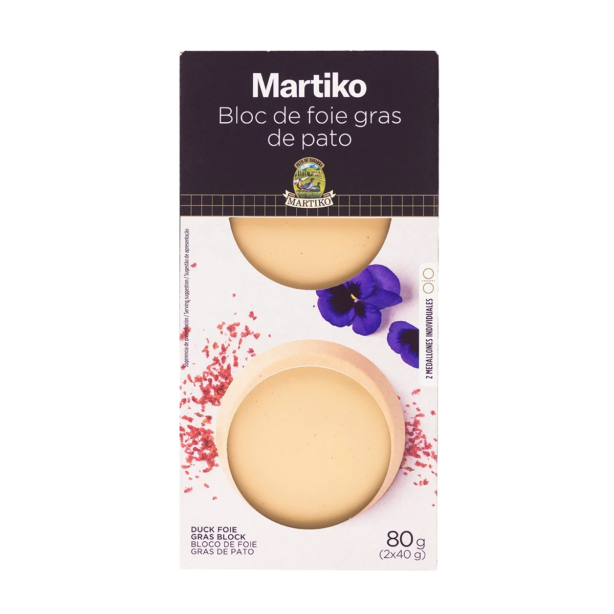 Nuestra receta más tradicional de bloc de foie gras de pato presentado en un cómodo envase con dos medallones divisibles. Una opción excelente para los amantes de sabores intensos y texturas fundentes. Elaborado con mimo a partir de trozos de lóbulos de foie gras de pato ligeramente sazonados y triturados para formar una fina emulsión. Excelente calidad, delicado sabor y agradable textura.